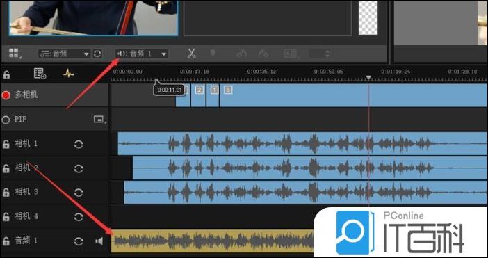 点击菜单栏的【工具】——【多相机编辑器】,这个功能也可以从视频轨道上找到,如图,