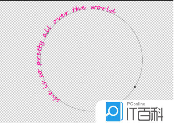 选择文字工具,鼠标指针放到路径上,当指针变成曲线的时候,点击路径输入文字,那么文字会沿着圆形路径方向环绕。