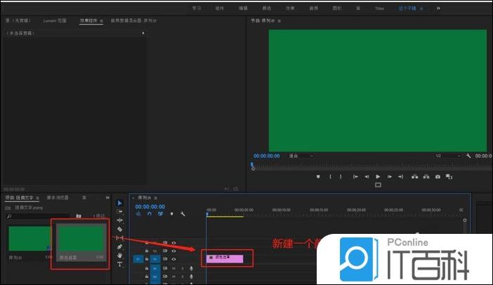 2、在制作文字之前,先来新建一个 颜色遮罩 ,将颜色遮罩拖到时间轴视频轨道1上作为 背景填充 。