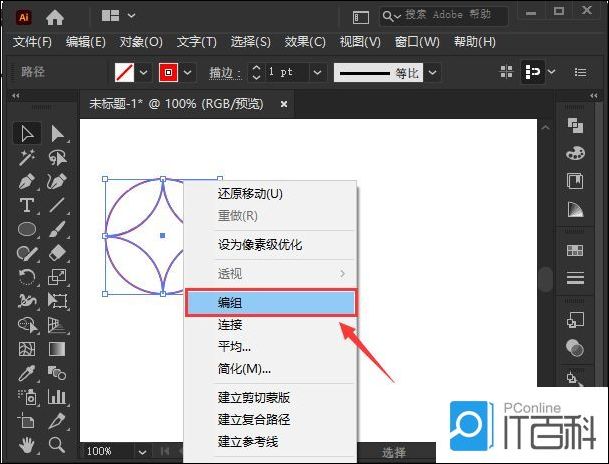 我们把两个形状一起选中,然后右键选择【编组】成一个整体的图案。
