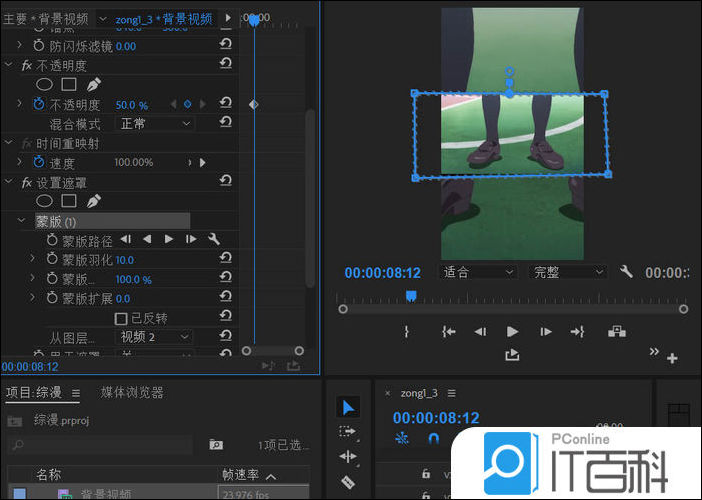 3、双击背景视频,放大背景视频,并调节 不透明度 。
