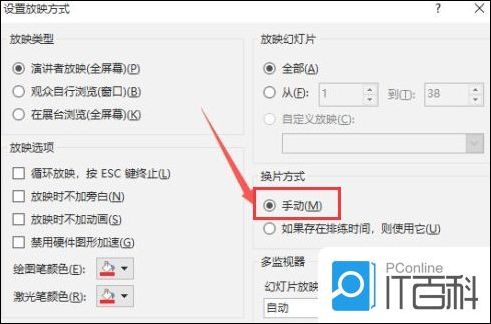 3、再点击幻灯片放映——设置幻灯片放映——将换片方式改为手动就可以了!