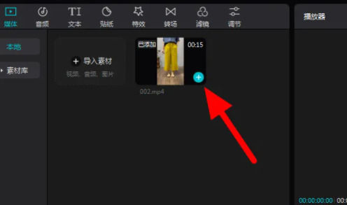 2、素材导入之后,我们点击素材视频旁边的 加号。