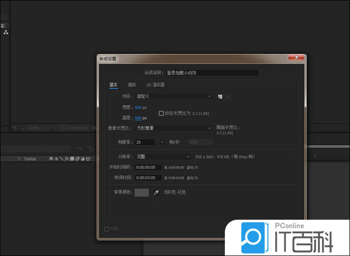 1、打开ae软件,命名登录加载小动效,调整相应的参数。