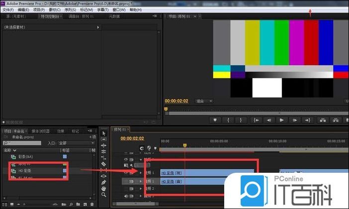 2、将彩条导入时间线之后,进行彩条 音视频链接的解除 。
