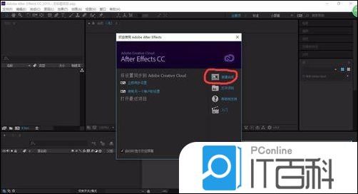 2、在弹出的 "欢迎 "使用Adobe After Effects"对话框中点击"新建合成"图标,如下图所示。