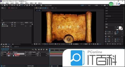 7、在时间线面板中,选择 "真相只有一个" 层,按住Enter键,更改该图层名称为" 文字 "动画,如下图所示。