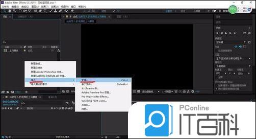 4、打开项目面板,右击该面板,在弹出的快捷菜单中选择" 导入>文件..." 命令或按住 Ctrl+I键打开【导入文件 】对话框,选择名为"我的飞车"的视频,单击" 导入 "按钮,即将" 我的飞 车"视频导入到项目面板中,如下图所示。