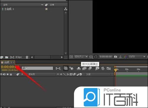 2、再从“ 项目 ”栏点选新建完毕的合成,这里我命名的是“ 合成1 ”,可以看到”时间线“ 一栏出现了 “合成1”项目。
