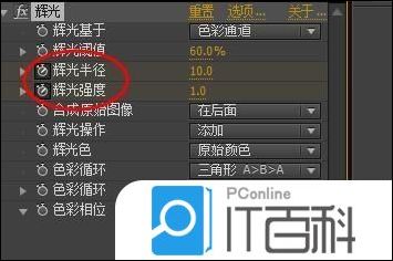 6、拖动下方“ 时间线标尺 ”上的“时间指示器”到另一个位置,并修改“ 辉光半径 ”和“ 辉光强度 ”的数值,取相同距离,将“ 时间指示器 ”继续向后拉动,并将辉光数值还原到未改动前。