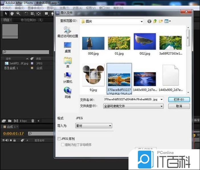 2、建好合成之后,才是 素材的导入 ( 图片视频皆可 )