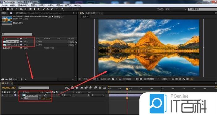 3、导入的素材可以用鼠标 直接拖拽到 合成下面的 时间线 上
