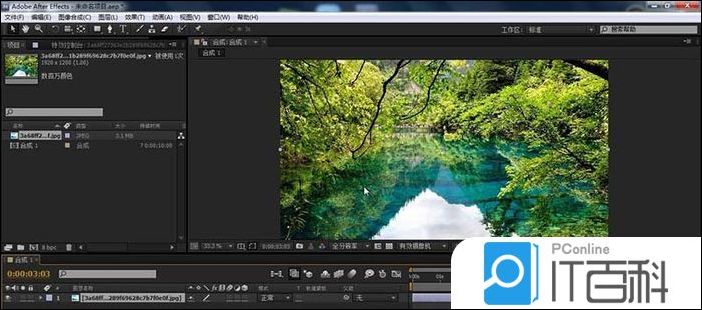 1、首先就是素材的导入,这个导入的方法很简单,不再赘述,将素材库的素材拉至合成里面的时间线上