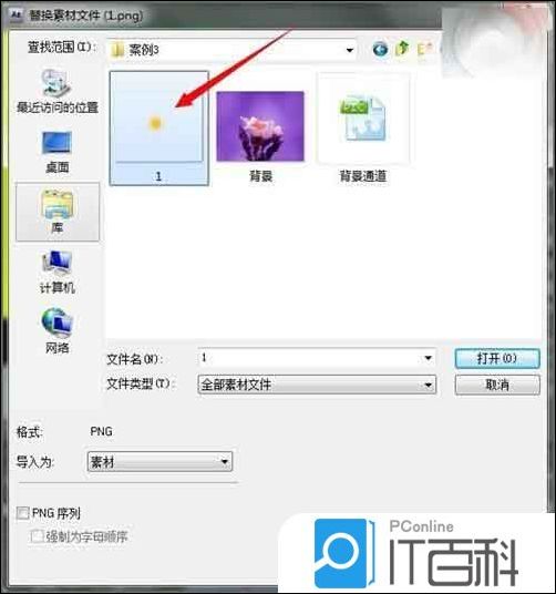 4、点击之后,找到素材所在的位置, 直接点击素材进行打开。