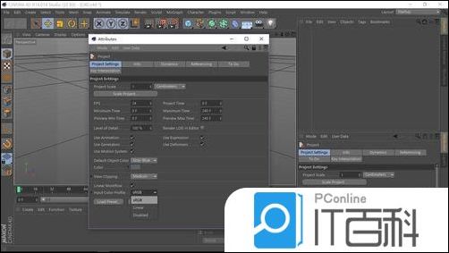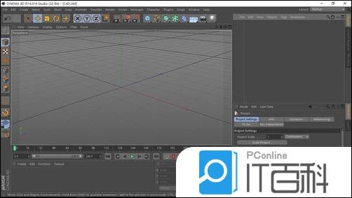 3、只是会自动打开C4D工程(注意一下现在的显示状态),默认会显示工程设置(右下角的Project就是),如果没看到设置面板,可以 Ctrl+D打开 ,但太小不容易观看,我们点击最右侧的+号按钮单独显示工程设置面板。