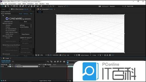 7、回到AE,拖动C4D文件到合成,效果如图,当前C4D已经匹配了AE的设置,但AE有些选项任然没匹配完成。