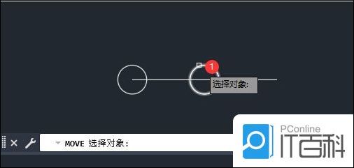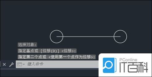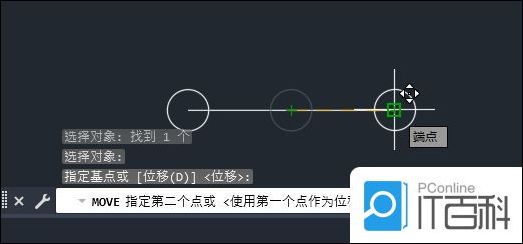 完成基点的指定后,需要指定移动操作的第二个点。第二个点将确定对象移动的方向和距离。在本例中,我们选择小圆的另一个端点作为第二个点。