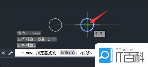 选择对象后,需要指定移动操作的基点。基点是确定移动起点的参考点。通常,基点选择为对象的某个特定点。在本例中,我们选择小圆的中点作为基点。