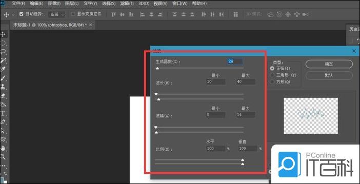 现在,点击菜单栏的【滤镜】,然后选择【扭曲】,再选择【波浪】。这将打开扭曲滤镜的参数设置窗口。