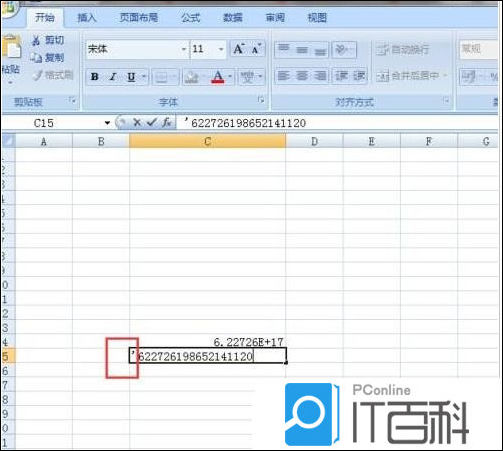 3、切换单元格,我们可以在数字前面加一个英文的‘单引号然后接着输入数字。