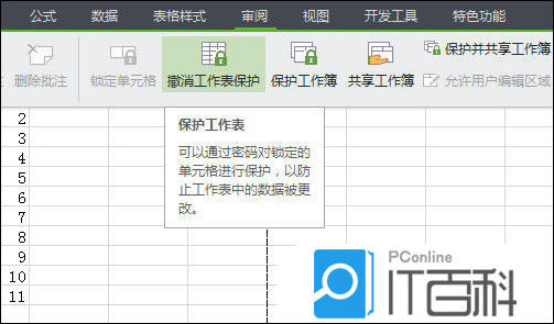 5、若果你要再次进行编辑,那么你就要在“审阅”菜单中,选择“撤销工作表保护”。