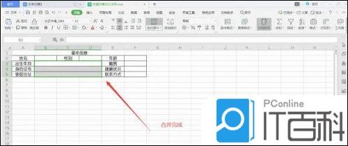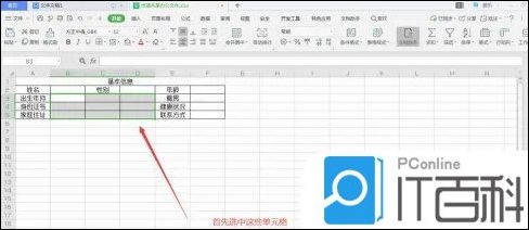 1、打开WPS2019,首先我们做出登记表的基本形态,这里我们要合并的分别是出生年月、身份证号、家庭住址对应的单元格。