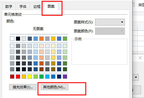 4、随后点击“ 图案 ”,然后点击“ 其他颜色 ”。