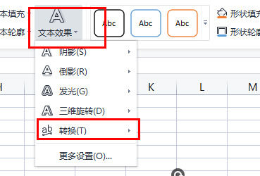 5、随后点击“ 文本效果 ”,点击“ 转换 ”。
