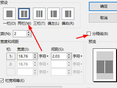 4、接着我们就可以看到“ 两 栏 ”还可以在其中添加分割线。