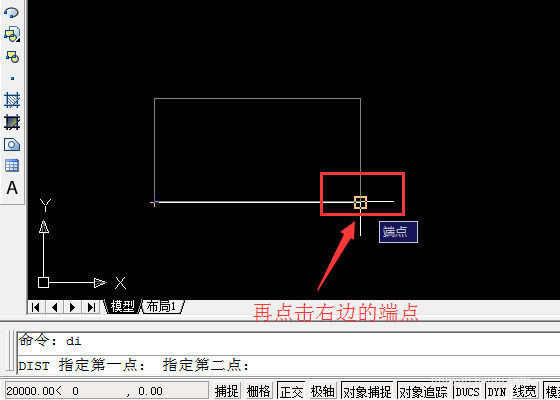 5、接着鼠标移动到矩形长度的右侧端点上也点击一下。