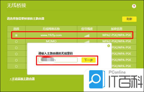7. 此时,第二台tplink路由器会自动扫描附近的wifi信号,等待几秒钟即可;在扫描的结果中,找到第一台tplink路由器的wifi名称——>然后输入第一台tplink路由器的wifi密码;