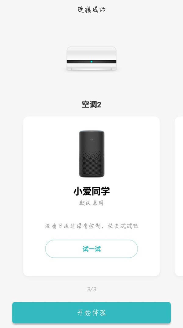 4、选择空调品牌后进行功能测试,连接成功后即可用小爱控制空调了。