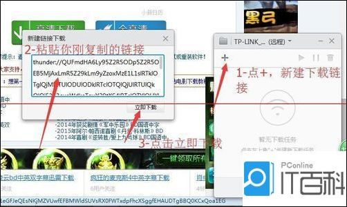 8、打开右下角的小米路由器,点+,选择 【新建连接下载】,粘贴你刚刚复制的链接,点击【立即下载】