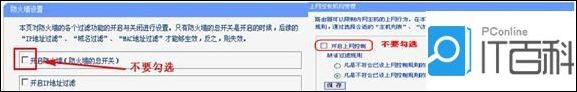 b 检查您的路由器中是否设置了IP地址过滤或者MAC过滤,在路由器的管理界面中点击"安全设置--防火墙设置"或"上网控制",不勾选"开启防火墙"或"开启上网控制"然后保存,再进行尝试打开网页;
