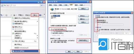 方法6:如果打开浏览器弹出拨号连接,请点击“设置”-选择“从不进行拨号连接”-“确定”然后重新登录即可;