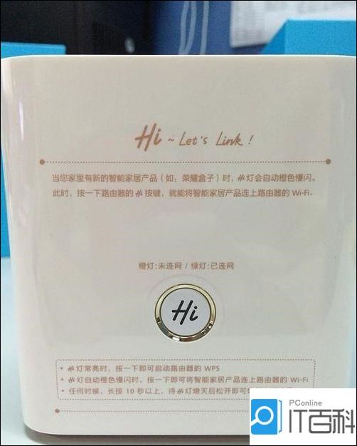 1、路由器周边贴着保护膜,这个还是值得赞扬的,正面是一个大大的 ”hi“圆形指示灯 。