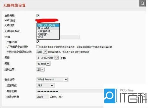 AP: 无线接入点,手机平板可以连接上网。需要给手机上网就用这个。在设置的时候注意选择加密模式,推荐wpa2+AES方式,前者是考虑安全性,后者是考虑兼容性,选择TKIP,经常会导致网速变慢。再者密码加密的时候不能用弱密码,比如固话或者手机号码,有规律的名字歌名人名等,尽量是无规律,数字字幕符号相互结合的方式,以免被字典暴力破解。