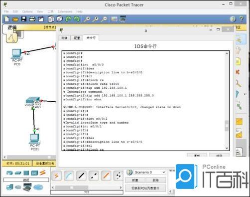 规划各台PC的IP地址,子网掩码和网关,并把它们配置在相应的PC里面,PC0的IP地址为192.168.40.10/24 192.168.40.1,PC11的IP地址为192.168.10.10/24 192.168.10.1,pc21的IP地址为192.168.20.10/24 192.168.20.1,pc31的IP地址为192.168.30.10/24 192.168.30.1,