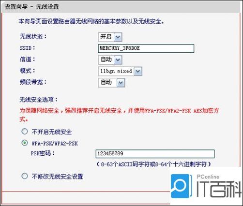 5、接下来就是设置无线网络的参数了,按需设置无线名称(即SSID)和密码,建议使用WPA2加密: