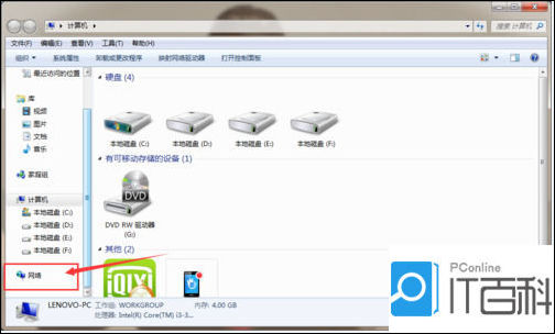 打开我的电脑(计算机),点击:网络;