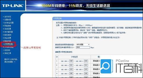 2、进入无线路由器控制界面我们进入IP带宽控制: