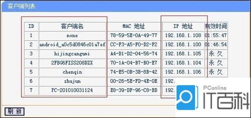 4、我们在无线路由器DHCP服务器里面可以看见客户端名称和对应的ip