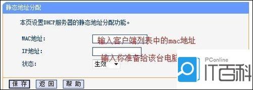 3、我们进入无线路由器DHCP服务器静态地址分配;添加新条目;将客户端列表复制的mac地址黏贴进去分配ip地址;