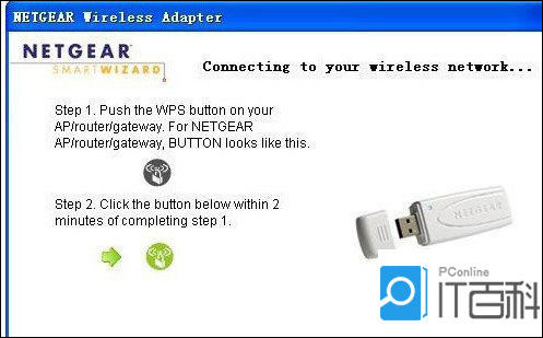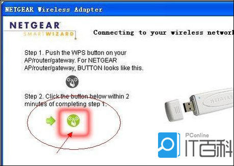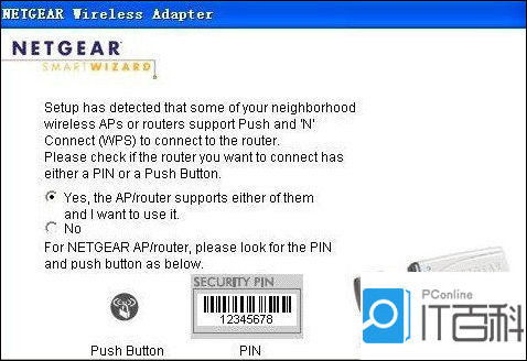 之后会会弹出样的NETGEAR WN111无线网卡加密方式。NETGEAR WN111有两种加密方式:PIN加密和按键加密。我们先来讲讲PIN加密法,
