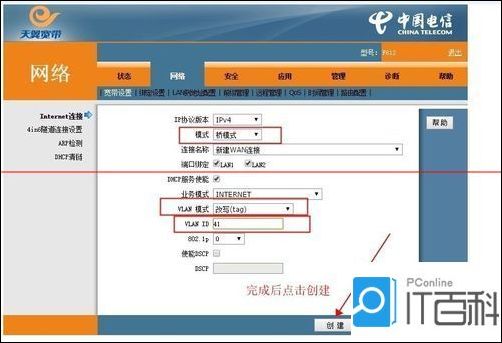 3、删除后就需要建立一个桥连接把这个拨号信息通过桥连接转到无线路由器上。点击新建连接,连接名称写桥连接。然后写上桥接41通道。所以在VLAN ID 写上41,这样光猫就设置好了。