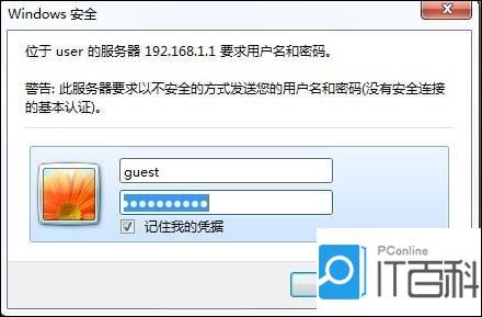 在弹出的Windows安全界面输入用户名:guest,密码:guest