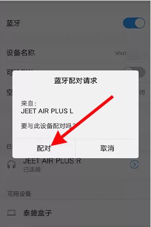 2、打开手机蓝牙,点击 搜索 到的jeet耳机,点击配对即可。