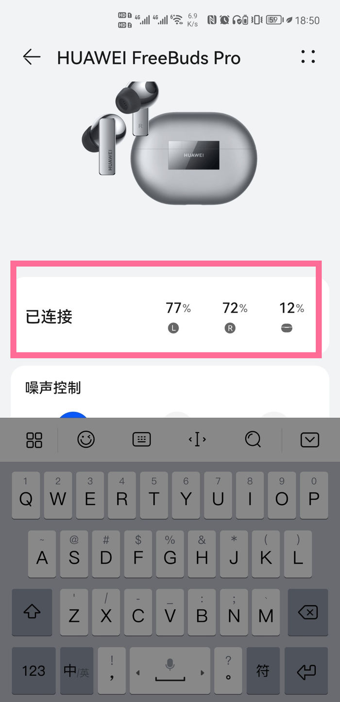 2、耳机和手机连接后,在智慧生活APP中添加耳机后,打开智慧生活APP,点击耳机卡片,进入详情界面即可看到电量显示百分比。