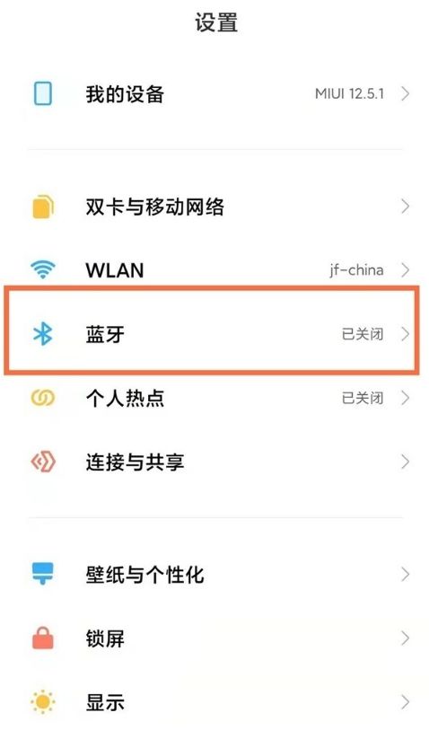 2、打开小米手机设置,点击【蓝牙】,将【开启蓝牙】的开关开启。