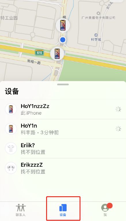 3、点击“所有设备”,在其中找到需要查找的airpodspro。在每台设备的下方,大家就会看到上次 定位 到这台设备的时间位置或者呈现“离线”状态。